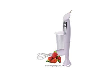 Гарантия производителя. Мощность 400вт. погружной. корпус из высококач. пластика. ножи из нерж. стали. 2-х скоростной режим работы. съемная насадка блендер. насадка-венчик. мерный стакан 600мл. макс. время непрерывной работы 1мин. низкий уровень шума. None