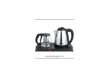 Гарантия производителя. Мощность 1500вт чайный набор: - электрочайник и стеклянный заварочный чайник - подогрев заварочного чайника - ситечко для заварки из нержавейки чайник: - объем 1,5л - световой индикатор работы - автоматический выключатель - закрытый наг None