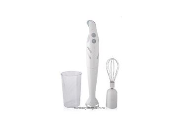 Гарантия производителя. Мощность 300вт. мотор с низким уровнем шума. четырехлопастной нож. 2 скорости. насадка венчик. мерный стакан 0,8л. None