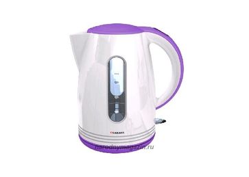 Гарантия производителя. Мощность 2000вт. макс. объём 1,7 л. корпус из высококач. пластика. скрытый нагреват. элемент. автоотключение при закипании воды. защита от перегрева. световой индикатор работы. съёмный фильтр от накипи. цвет белый с фиолетовым. None