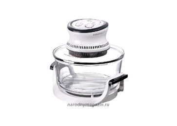 Гарантия производителя. 12 л объем; галогеновая лампа внутри контейнера; энергосбережение; легко использовать, чистить и мыть; 1300 вт; различные настройки режимов приготовления; новый эргономичный дизайн None