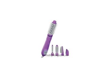 Гарантия производителя. Щетка для сушки волос с дополнительными рядами густой щетины и силиконовым покрытием ; регулируемая круглая щётка для создания завитков диаметр 25-40 мм ; насадка для создания объёмных причёсок ; насадка для сушки волос; мощность 600 ватт; бережная сушк None
