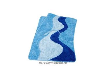 Гарантия производителя. Набор ковров/ванной комнаты "чехарда" ворс 1,0 см 50х50, 50х80, цв.синий/бирюзовый None