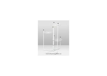 Гарантия производителя. Технические характеристики: - каркас выполнен из металлической трубы d12 мм, прутка d3 мм, пластиковой фурнитуры d24 мм; - предусмотрено 3 места d240 мм для цветочных горшков; - изделие полностью разборное; None