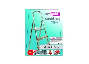 Гарантия производителя. Стремянка алюминевая eurogold "alu dom" - 4 ступени размер a-157см; b-84,5см; c-260см; d-78см; e1/e2-30/46см , допустимая нагрузка макс. 150кг, цвет пластика - синий; профиль алюминевый, ступени стальные. None