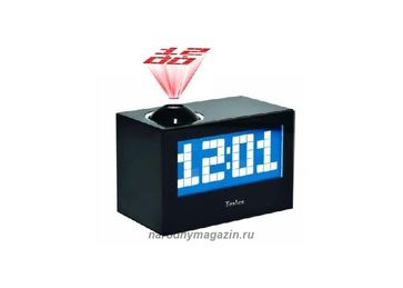 Гарантия производителя. Fm приемник, термометр, будильник, поворот проецируемого изображения на 180гр, 12/24 ч. формат времени, 3 режима установки будильника 16 мелодий. напоминание дней рождения, обратный счетчик/секундомер, календарь, 220~240 в., 50 гц адаптер или от батарей None