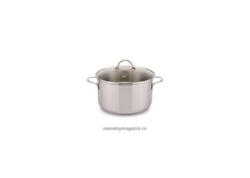Гарантия производителя. Кастрюля из нержавеющей стали 3,6 л, стеклянная крышка с ободком и пароотводом, диаметр 20см. None