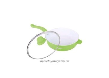 Гарантия производителя. Сковорода из алюминия с крышкой, внутри с антипригарным керамич. белым покрытием. стеклянная крышка. термостойкое силиконовое покрытие ручки. можно мыть в посудомоечной машине. размер: 24х7,0см. - 2,3л. None