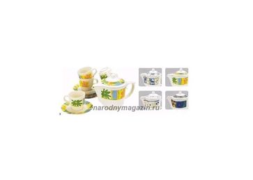 Гарантия производителя. Набор пластиковой посуды, 14 предметов calve - 6 чашек - 6 блюдец - чайник с крышкой. None