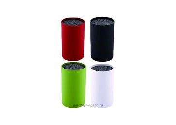 Гарантия производителя. Подставка для ножей с наполнителем из полипропиленового волокна пластик, размер: 11х11х18см; покрытие soft touch, в ассортименте 4 цвета: черный, красный, белый, зеленый . None