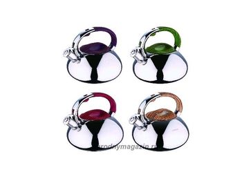 Гарантия производителя. Чайник металлический со свистком нжc, 3.0л, индукционное дно, силиконовая ручка, зеркальное покрытие, индукция, 4 цвета: коричневый, зеленый, красный, фиолетовый . None