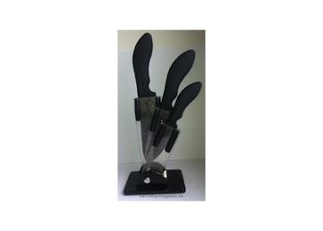 Гарантия производителя. Набор керамических ножей, 4 пр. универсальный 12 см, поварской 15 см, нож для чистки 7.5 см , диоксид циркония, лезвие черного цвета, ручка с покрытием "soft touch", акриловая подставка. None