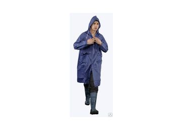 Плащ с центральной застежкой – кнопки с клапаном. Швы проклеены изнутри. Цвет: синий Ткань: нейлон Размер: XL, XXL, XXXL. ГОСТ 12.4.134-83