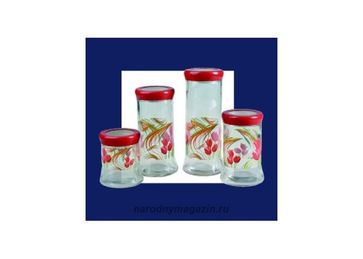 Гарантия производителя. Набор для хранения сыпучих продуктов или жидкостей 4 предмета, круглые стеклянные емкости, размеры: 11,5х28,3, 11,5х23,5, 11,5х18,5,11,5х13,5. None