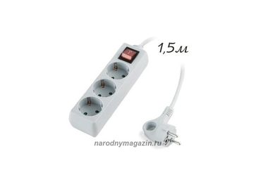 Гарантия производителя. 3 - розетки с заземлением, выключателем и защитой от детей,, длина кабеля - 1,5 метра, эргономичная вилка, максимальная нагрузка 3500 вт/16а. цвет корпуса - светло-серый. None