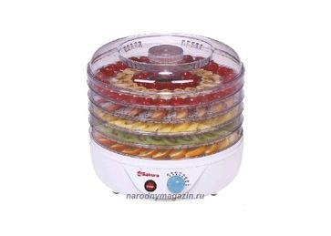 Гарантия производителя. Мощность 200 вт. тип управления механический. кол-во ярусов: 5. размеры одного яруса: диаметр 30 см, высота 3 см. регулируемый термостат. отключение при перегреве. None