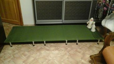 Собственная разработка, собственное изготовление. Пожалуй, лучшая раскладушка по соотношению цена-качество. Легкая, компактная в перевозке, всего 75х12 см в сумке. Вес от 4 кг. Выдерживает до 600 кг. 5-ти летняя гарантия на каркас.
