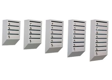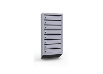 Ящик почтовый изготовлен из стали 0,8 мм., поставляется в комплекте с замками. Имеется задняя стенка, скошенное дно. В изделии установлены фиксаторы дверей для предотвращения несанкционированного вскрытия ячейки. Покрытие полимерное. Цвет -серый. 4-х секц., 5-ти секц., 6-ти секц., 7-ми секц., 8-ми секц.