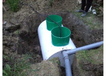 Септик имеет полипропиленовые патрубки для подводящих и отводящих труб Ду 110 мм.
