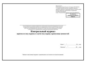 Контрольный журнал приема сдачи под охрану хранилища ценностей