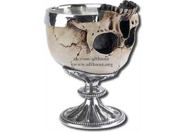 Кубок виде человеческого черепа в натуральную величину из смолы(имитируетслоновую кость) на оловянной подставке -рукоятке ручной работы. Высота = примерно 19,5 см. Станет прекрасным украшением интерьера.Для людей с мистически и готическим вкусом.А так же для тех кому не чуждо чувство превосходства.Станьте счастливым обладателем , по истине уникальной вещи.Создана в ручную , по средневековым эскизам , британскими мастерами.Прекрасный подарок как себе, так и своему начальнику ,или просто хорошему другу.