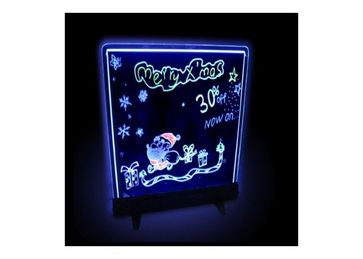 Светящаяся рекламная поверхность (мобильные стенды, световые вывески, неоновые доски ) — имеет специальный контроллер на 12 режимов подсветки. При помощи контроллера изображение может менять цвет, мигать, переливаться различными цветами. Необычно яркие изображения и тексты привлекают внимание, а значит вашему бизнесу обеспечен приток новых клиентов. Применение вывески с изменяемым дизайном. • как элемент выставочного оборудования, мобильных стендов. Привлечение внимания к вашему стенду на выставках, ярмарках • доски меню в ресторанах, кафе, барах, ночных клубах. • вывески, информационные табло, объявления о скидках (Discount), распродажах (Sales), новых поступлениях в магазин, информационные панели, интерьерная реклам • в оформлении витрин. Вывески размещаются за стеклом витрин в магазинах внутри торговых центров для привлечения внимания проходящих мимо потенциальных клиентов • стрит лайн, заменители штендеров, рекламных и информационных стендов, располагаемых на тротуаре перед входом в торговую точку, магазин, цветочный киоск • вывески над входом в магазин, салоны красоты, парикмахерские, на киосках, аптеках, салоны красоты, турагенства • направляющие внутри торгового зала, холлы бизнес центров и гостиниц, реклама товара внутри торгового зала • рекламные щиты на АЗС, магазинах при АЗС • в качестве доски для маркера, доски для рисования (особенно если в зале необходимо притушить свет для демонстрации слайдов, видеороликов ), доски флипчарт • оформление магазина в праздничные дни (Новый Год, День Победы, день города и т. п.) • как элементы промо стойки, торговой стойки • вместо меловых досок объявлений