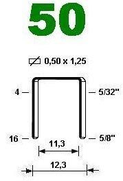 Тип скобы 50 Кол-во в боксе 5 000 штук Длина скобы 12 мм Кол-во скоб в полоске 84 шт Покрытие скобы стандартное электрогальваника Сечение 0,50х1,25 мм Расстояние между ножками, внутренее 11,3 мм Наружнее 12,3 мм Скоба 50 может быть выполнена в следующи... Минимальная сумма заказа 999.00 руб.