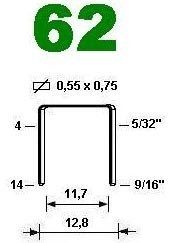 Тип скобы 62 Кол-во в боксе 10 000 штук Длина скобы 12 мм Кол-во скоб в полоске 167 шт Покрытие скобы электрогальваника Сечение 0,55х0,75 мм Расстояние между ножками, внутренее 11,7 мм Наружнее 12,8 мм Скоба 62 может быть выполнена в варианте из нержав... Минимальная сумма заказа 999.00 руб.