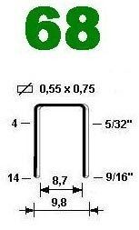 Тип скобы 68 Кол-во в боксе 20 000 штук Длина скобы 4 мм Кол-во скоб в полоске 167 шт Покрытие скобы стандартное электрогальваника Сечение 0,55х0,75 мм Расстояние между ножками, внутренее 8,7 мм Наружнее 9,8 мм Скоба 68 может быть выполнена в следующих... Минимальная сумма заказа 999.00 руб.