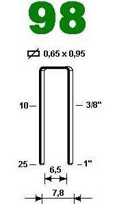 Тип скобы 98 Кол-во в боксе 10 000 штук Длина скобы 16 мм Кол-во скоб в полоске 125 шт Покрытие скобы стандартное Электрогальваника Сечение 0,65х0,95 мм Расстояние между ножками, внутренее 6,5 мм Наружнее 7,8 мм Скоба 98 может использоваться: Изготовле... Минимальная сумма заказа 999.00 руб.