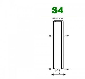 Тип скобы S4 Кол-во в упаковке 10 000 шт Длина скобы 60 мм Кол-во скоб в полоске 71 шт Стандартное покрытие скобы лакирование Калибр проволоки 16 Сечение 1,40х1,60 мм Расстояние между ножками, внутренее 9,3 мм Наружнее 12,1 мм Скоба S4 может быть выпол... Минимальная сумма заказа 999.00 руб.