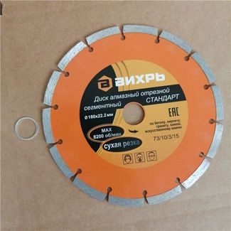 - Диск алмазный отрезной сегментный СТАНДАРТ, 180 х 22,2 мм, сухая резка Вихрь по выгодной цене 580 р. руб.;