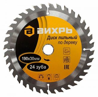 - Диск пильный по дереву ВИХРЬ 190х30 мм по выгодной цене 489 р. руб.;