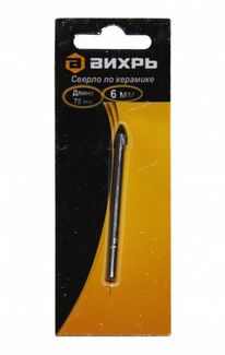 - Сверло по керамике и стеклу ВИХРЬ 6 мм по выгодной цене 109 р. руб.;