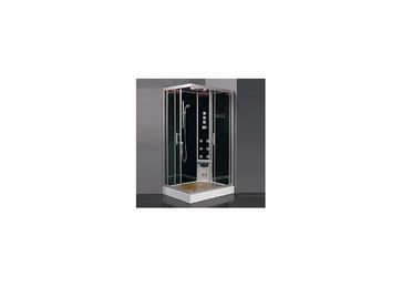 Комплектация:FM-радио,вентилятор,алюминиевый профиль "сатин серебро"задняя панель из черного стекла,верхний душ,хромотерапия,легко скользящая раздвижная дверь,откидное пластиковое сиденье черного цвета,пульт управления,душ-лейка,полочка для шампуня,парогенератор,ароматерапия,100 %-дренируемый поддон.