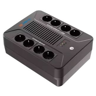 ИБП Комфорт 600 Энергия - это линейноинтерактивный источник бесперебойного питания небольшой мощности со встроенной батареей, который оптимально подходит для защиты персональных компьютеров, мониторов, офисной техники и сопутствующей периферии от основных неполадок с электропитанием. Прибор прост в эксплуатации и оснащен 8 розетками типа «Shuko», 4 из которых являются стабилизированными, и работают в режиме источника бесперебойного питания и сетевого фильтра, а другие 4 только в режиме сетевого фильтра. ИБП Комфорт 600 снабжен функцией «холодный старт», позволяющей включить ИБП при отсутствии напряжения в сети. Тип инвертора: Line-interactive Способ установки: Напольный / Настенный Форма напряжения: Синусоида (от сети) / Модифицированная синусоида (от батареи) Число фаз: Одна Выходное напряжение (В): 220 Рабочая мощность (ВА): 600 Пик-фактор: 3:1 Наличие стабилизатора: Встроенный стабилизатор напряжения Наличие аккумулятора: Внутренний 7 АЧ Тип аккумулятора: Свинцово-кислотная необслуживаемая тип AGM Величина постоянного напряжения (В): 12 Количество батарей: 1 x 12В 7Ач Количество 12 вольтовых аккумуляторов необходимых для работы: 1 Автозапуск: Да Функция заряда аккумулятора: Есть Время работы от батарей: 5-17 минут Время зарядки: 6-8 час 90% ёмкости Рабочий диапазон входного напряжения сети (В): 162-296 Выходное напряжение при питании от сети (В): 220 ±10% Выходное напряжение при питании от батарей (В): 220 ±1% Частота выходного напряжения (Гц): 50 Защита по току: Автоматический выключатель Защита от полного разряда батареи: Есть Защита от перезаряда батареи: Есть Защита от перегрузки и короткого замыкания: Есть Время переключения режимов работы: Не более 8 мс КПД Работа от батарей (%): 88 КПД (%): 95 Индикация параметров работы: Звуковая индикация / Светодиодный индикатор Способ охлаждения: Естественная циркуляция воздуха Подключение к сети: Cетевой шнур с вилкой «Schuko» 2 м Подключение нагрузки к инвертору: 8 розеток Shuko Уровень шума: Не более 45 дб (на расс