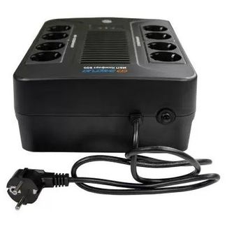 ИБП Комфорт 800 Энергия - это линейноинтерактивный источник бесперебойного питания небольшой мощности со встроенной батареей, который оптимально подходит для защиты персональных компьютеров, мониторов, офисной техники и сопутствующей периферии от основных неполадок с электропитанием. Прибор прост в эксплуатации и оснащен 8 розетками типа «Shuko», 4 из которых являются стабилизированными, и работают в режиме источника бесперебойного питания и сетевого фильтра, а другие 4 только в режиме сетевого фильтра. ИБП Комфорт 800 снабжен функцией «холодный старт», позволяющей включить ИБП при отсутствии напряжения в сети. Тип инвертора: Line-interactive Способ установки: Напольный / Настенный Форма напряжения: Синусоида (от сети) / Модифицированная синусоида (от батареи) Число фаз: Одна Выходное напряжение (В): 220 Рабочая мощность (ВА): 800 Пик-фактор: 3:1 Наличие стабилизатора: Встроенный стабилизатор напряжения Наличие аккумулятора: Внутренний 8 АЧ Тип аккумулятора: Свинцово-кислотная необслуживаемая тип AGM Величина постоянного напряжения (В): 12 Количество батарей: 1 x 12В 8Ач Количество 12 вольтовых аккумуляторов необходимых для работы: 1 Автозапуск: Да Функция заряда аккумулятора: Есть Время работы от батарей: 2-10 минут Время зарядки: 6-8 час 90% ёмкости Рабочий диапазон входного напряжения сети (В): 162-296 Выходное напряжение при питании от сети (В): 220 ±10% Выходное напряжение при питании от батарей (В): 220 ±1% Частота выходного напряжения (Гц): 50 Защита по току: Автоматический выключатель Защита от полного разряда батареи: Есть Защита от перезаряда батареи: Есть Защита от перегрузки и короткого замыкания: Есть Время переключения режимов работы: Не более 8 мс КПД Работа от батарей (%): 88 КПД (%): 95 Индикация параметров работы: Звуковая индикация / Светодиодный индикатор Способ охлаждения: Естественная циркуляция воздуха Подключение к сети: Cетевой шнур с вилкой «Schuko» 2 м Подключение нагрузки к инвертору: 8 розеток Shuko Уровень шума: Не более 45 дб (на расс