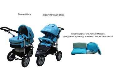 Многофункциональная оригинальная модель от рождения до 3 лет! прочная алюминиевая раманадувные резиновые колеса: переднее вращающееся на 360° или зафиксированное в прямом положении, задние колеса повышенной проходимости с пружинными амортизаторамиудобная мягкая ручка, регулируемая по высоте ЗИМНИЙ БЛОК люлька имеет большое спальное утепленное место, а также матрасик и капюшонвозможность установки по ходу и против движениясъемная обшивка для удобства стирки ПРОГУЛОЧНЫЙ БЛОК многопозиционная спинка (до положения лежа)пятиточечный ремень безопасности, съемный ограничительный порученьутепленный спальный мешок В комплекте: Рама коляски с шасси.Зимний блок (переносная колыбель),Прогулочный блок.Спальный мешок, сумка для мамы.Покрытие от дождя, москитная сетка.Инструкция. Габариты: Размер в сложенном виде:97x61x36 смРазмер в разложенном виде:83x61x104 смВес:12 кгКартон:46x42x78 смУпаковка: 1шт/0.151 м3 Модульная система продается также в комплектации 3 в 1 (зимний и прогулочный блоки).