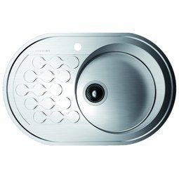 кухонная мойка врезная круглая, нержавеющая сталь; (ШхГ) 77х48 см None