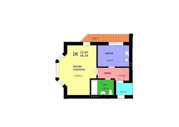 - 1-к.кв 46м, 1,6мл, свидетельство, дом с лифтом по выгодной цене 1 600 000 р. руб.;
