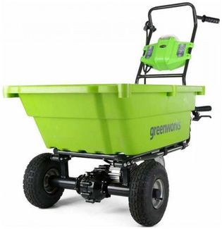 - Тележка садовая GREENWORKS 40 V без акк и з у 7400007, Садовая самоходная тележка 40В (без аккумулятора и зарядного устройства) мощность: 300Вт, объем ковша 1,5м3 (106 л), грузоподъемность: до 150 кг, камерные колеса 25 см передние, 20 см задние, вес 9 кг по выгодной цене 41 990 р. руб.;