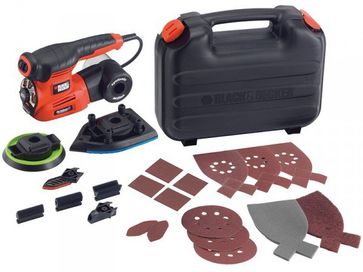 ПШМ Блекэнддеккер KA 280 K, Многоцелевая универсальная шлифмашина Autoselect Cyclonic ("4 в 1"), 220Вт, диаметр диска 125 мм или шлиф. платформа 136 кв. см, насадка для шлифовки труднодуступных мест, профильные насадки, набор шлифбумаги, кейс Минимальная сумма заказа 999.00 руб.