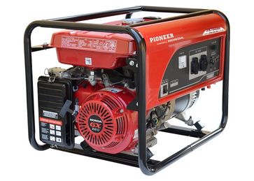 Бензиновые генераторы торговой марки PIONEER изготовлены в США компанией Mirkon Energy на базе оригинального японского двигателя Honda GX390 и генератора переменного тока (альтернатора) Marathon Electric (США). Надежный японский двигатель и 100% медные обмотки ротора и статора делают эту генераторную установку незаменимой, как для электроснабжения частного жилья, строительных работ, так и для высокочувствительного электрооборудования.