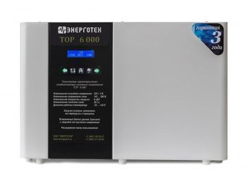 - Стабилизатор Энерготех TOP 6000 по выгодной цене 38 300 р. руб.;
