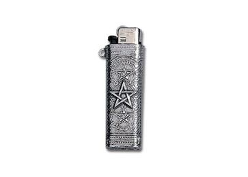 Чехол на зажигалку Pentagram.Интересное решение для аккуратного ношения зажигалок .На футляр нанесен символ белой пентаграммы-символ защиты владельца и накопления положительной энергии.Так же две пентаграммы в круге усиливают приток положительной универсальной энергии.Выполнены из высококачественного ювелирного сплава.Изготовлены в ручную ,по старинным рецептам ,высокопрофессиональнымибританскими мастерами.Эскиз для футляра взят из книги средневековой алхимии.Станет прекрасным приобретением для ценителей прекрасного , так же отличный подарок .