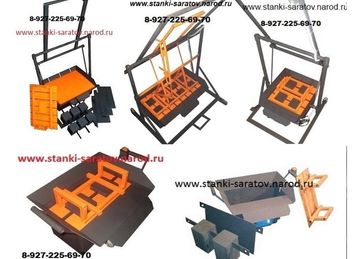 Мы конструируем и изготавливаем оборудование Вибростанки для производства шлакоблоков, керамзитоблоков,опилкоблоков деламитоблоков, полублоков, арболитовых, сплитерных,стеновых блоков.Вибростанки для производства блоков и тротуарной плитки. Представляем Вибропресс для производства блоков СТАЦ-02. Количество рабочих: 1-3 чел.;Мощность: 0,3 кВт;Производительность:до 600 блоков 390х190х188 (пустотные и безсустотные)до 1200 полублоков 390х90х188 (перегородочных)Необходимая под производство площадь: от 15-20 кв.м;Габариты: 700х600х2000 мм; (ДхШхВ)Номинальное напряжение: 220 В;Срок окупаемости: 1-2 недели. Данную машину можно приобрести как для организации коммерческого производства, так и для личных нужд (для строительства гаража, коттеджа и т.п.) Использование установоки позволит Вам:В считанные дни создать на пустом месте мини-цех по производству стройматериалов из практически любого местного сырья;Решить проблему дешевого жилого, хозяйственного и промышленного строительства;Обеспечить стройматериалами:строительство коттеджа или многоквартирного дома до 3-х этажей;кладку фундамента и стен любой конфигурации;.Если у вас возникли какие либо вопросы по данному оборудованию, то вы можете связаться с нами по телефону или написать на e-mail . Также предлагаем для подробного ознакомления посетить наш сайт:http://stanki-saratov.narod.ru Также для удобства наших клиентов осуществляем доставку по России Казахстану и Республике Беларусь