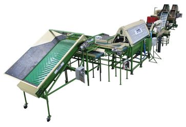 Линия мойки, полировки, шлифовки, сушки, сухой очистки, сортировки, переборки, калибровки по размеру, фасовки, упаковки овощей, картофеля, моркови, лука, свеклы, редиса, топинамбура, корнеплодов).