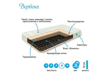 Матрац "Вербена" предназначен специально для тех, кто окружает себя исключительно практичными и качественными предметами интерьера. Эффективная, комфортная и, в тоже время, бюджетная "Вербена" отвечает всем требованиям, предъявляемые к матрацам с ортопедическим эффектом.