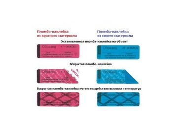 При попытке вскрытия пломбы-наклейки путем термического воздействия (выше 85°С) на поверхности наклейки проявляется специальный термохромный рисунок черного цвета.