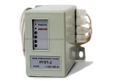 Реле повторного пуска (самозапуска) РПП-2 предназначено для автоматического включения (повторного пуска) низковольтных (0,4КВ) асинхронных электродвигателей после их отключения, вызванного снижением напряжения питающей сети или полным отключением напряжения (перерывом электроснабжения). Реле РПП-2 регистрирует информацию о количестве аварийных отключений, а также нормальных отключений электродвигателя кнопкой стоп. Максимальное число регистрируемых отключений 255. Реле регистрирует дату и время до восьми последних по времени аварийных отключений и повторных пусков электродвигателя.